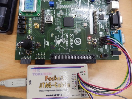 まず、JTAGケーブルとターゲットボードを、JTAGで接続します。