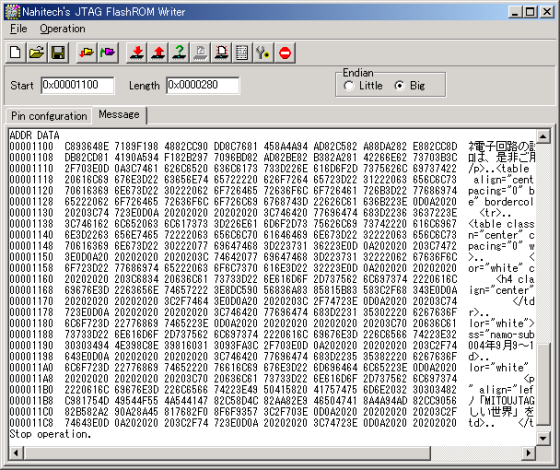 図5 フラッシュROMに書き込んだデータをダンプしている様子