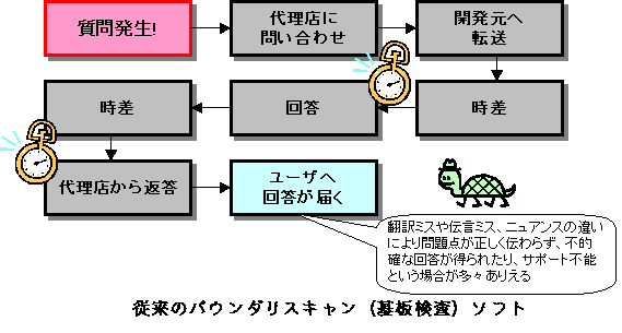 それに対して、海外製のツールでは質問事項を一旦代理店が預かることが多く、伝言のミスやニュアンスの違いによって的確な回答を得るのは非常に難しいというのが実情です。