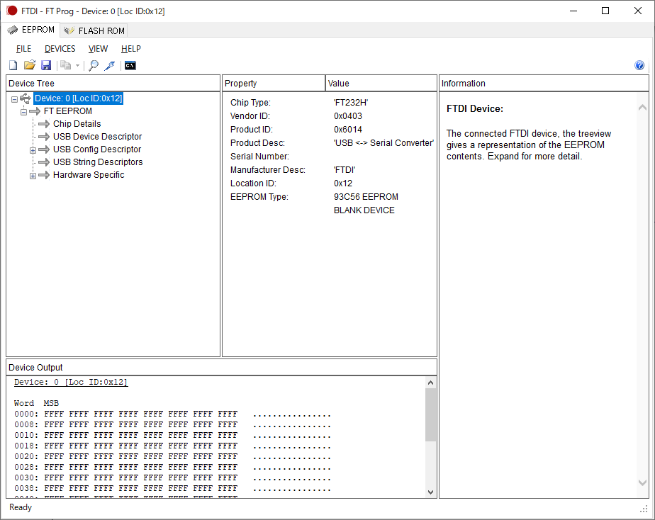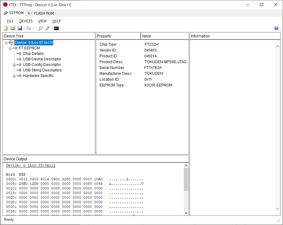 MPSSEを使用するにはFTDIデバイスにEEPROMの接続が必須となります。EEPROMがなければソフトウェアでどんなに設定してもMPSSEモードになることができません。