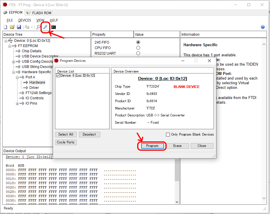 EEPROMに書き込むにはFT_Progというツールを使います。
