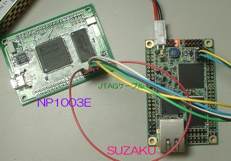 そこで、NP1003EをUSB-JTAGケーブル化してSUZAKUのFPGAへJTAGで接続しました。