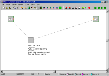 MITOUJTAG-0.1.5を起動し、Nahitech-USB2ケーブルで接続し、自動認識すると、「XC3S400_BARE」が認識されます。