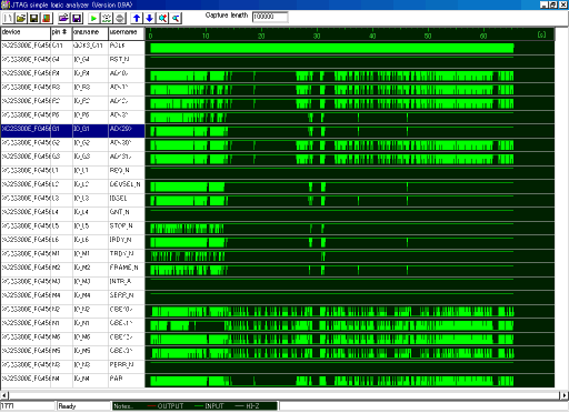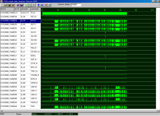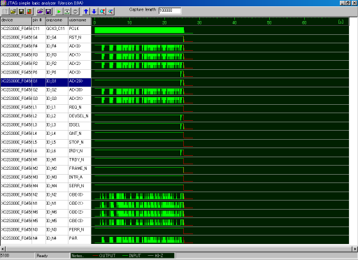 さて、UCFファイルを読み込んだら、ターゲットマシンを再起動し、MITOUJTAGのロジックアナライザを起動して、PCIバス上の信号を観察してみましょう。