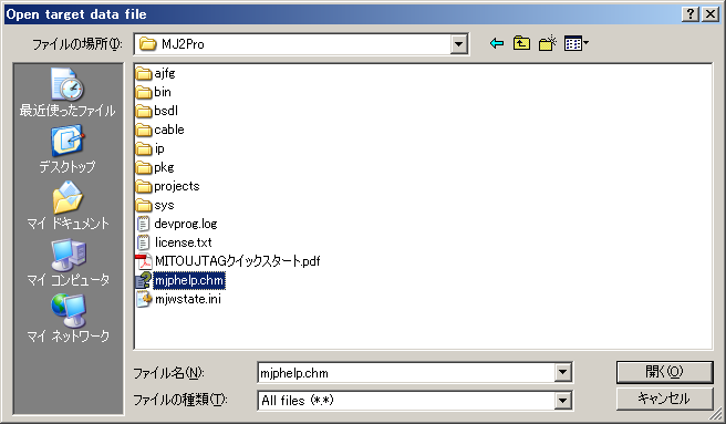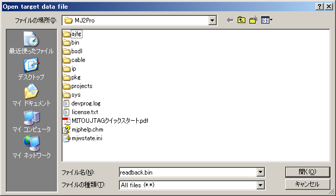 を押します。読み出し時と同様にダイアログが開くので、ファイルを選択します。
