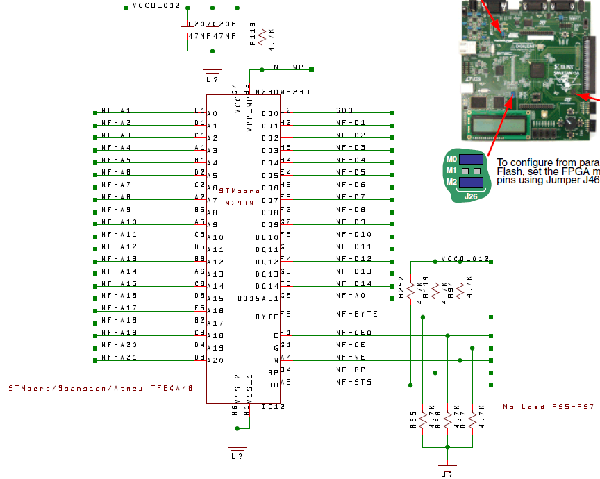 図8 Spartan-3ANスタータキットとフラッシュROMの間の接続