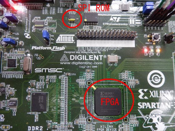 まず、FPGAとSPI ROMが搭載されたボードを用意します。
