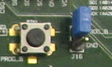 PROG_Bのジャンパは通常動作時はオープンにします。このジャンパをショートさせると、常にコンフィギュレーション要求がかかった状態になり、FPGAは起動しません。
