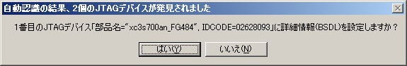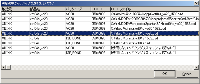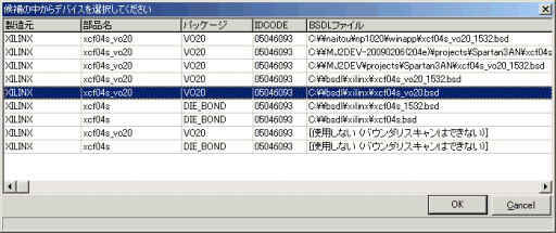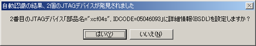 次に、コンフィグROMのXCF04Sが検出された旨のメッセージが表示されます。候補を選ぶダイアログが出たら、VO20ピンのものを選択します。複数の候補が表示された場合は、どれを選択しても構いません。
