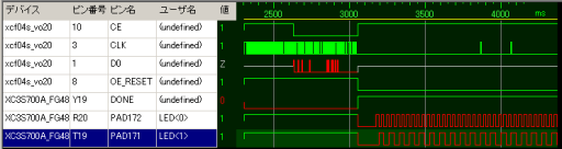 例えば、以下のようにコンフィグROMの端子を操作し、FPGAの反応を調べます。
