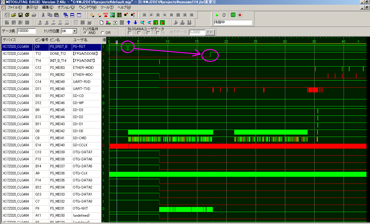 MITOUJTAGは書き込みをするだけではなく、書き込んだFPGAの端子の状態をモニタするということができることです。書き込んだデザインがちゃんと動いているかどうかをすぐに確認できます。