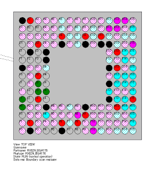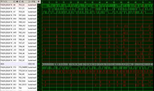 MITOUJTAGソフトを起動して、JTAGケーブルをつなぎ、自動認識→サンプリング→スタートと操作すると、BGAの端子の状態が見えるようになります。